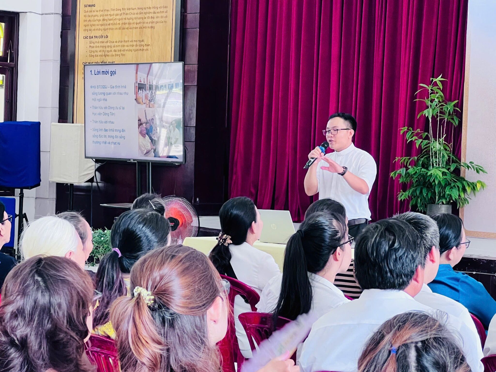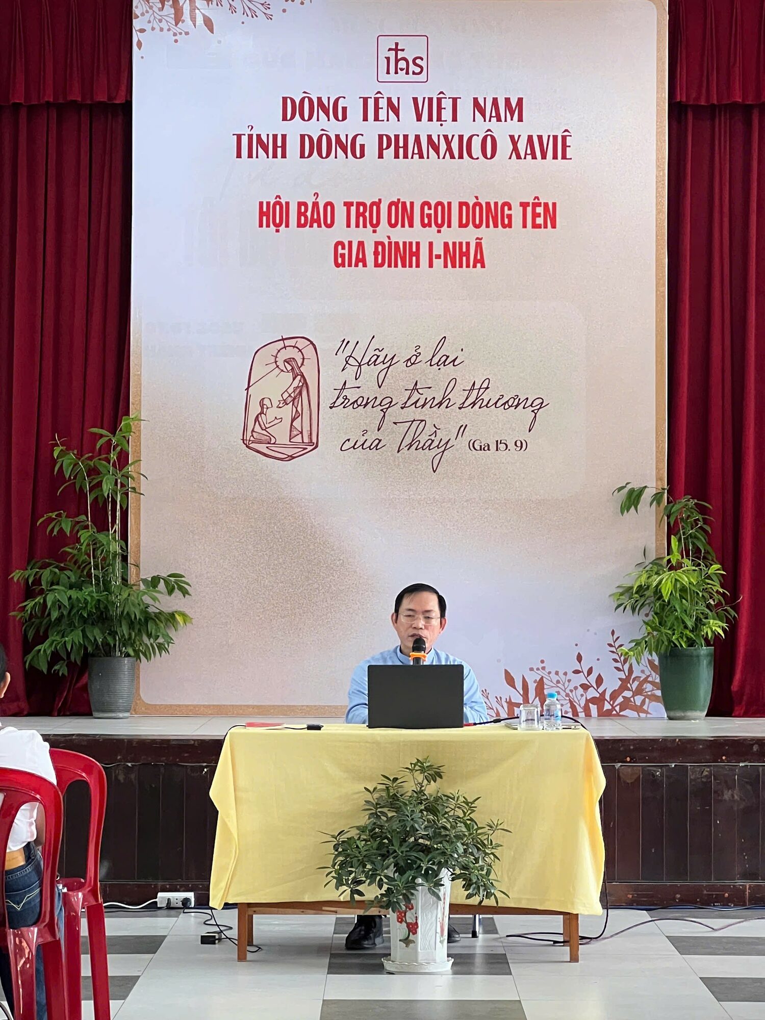 Tiếp nối, thầy Phó tế Phêrô Nguyễn Văn Đương, S.J. đã chia sẻ với quý thân hữu về mối liên kết thiêng liêng giữa Hội Bảo Trợ Ơn Gọi Dòng Tên – Gia Đình Inhã và Dòng Tên. Các thành viên trong Hội là những người yêu mến linh đạo Thánh I-nhã, muốn hỗ trợ vật chất cũng như tinh thần cho Dòng trong việc phát triển Ơn gọi Dòng Tên, huấn luyện các nhân sự cho cánh đồng sứ vụ, mà tự thân Dòng khó có thể thực hiện trọn vẹn nếu thiếu sự góp sức của các thân hữu và cộng đoàn dân Chúa. Tất cả nhằm giúp cho Dòng Tên Việt Nam hoàn thành tốt sứ mạng của mình cho vinh danh Chúa hơn và mưu ích cho các linh hồn hơn. Do đó, với tinh thần “người bạn đồng hành trong sứ mạng”, các thành viên trong Hội chính là “người nhà” của anh em Dòng Tên trong một mái ấm thiêng liêng của Thiên Chúa, nơi mọi người cùng nhau bước đi trong tin yêu, vui mừng và hy vọng. Hiện nay, Hội Bảo Trợ Ơn Gọi Dòng Tên – Gia Đình I-nhã trực thuộc Văn Phòng Phát Triển (VPPT) của Tỉnh Dòng Tên Việt Nam, và do thầy Phó tế Phêrô Nguyễn Văn Đương, S.J. phụ trách.