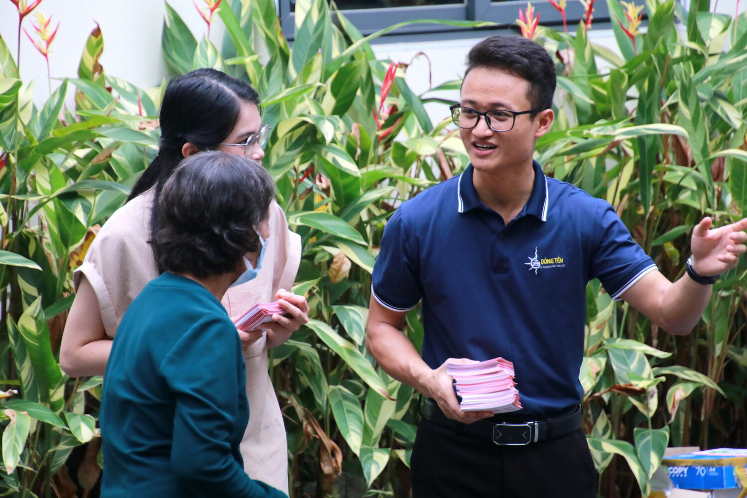 Các tình nguyện viên thuộc các nhóm nhiệt thành phục vụ trong nhiều phận vụ khác nhau. Chính yếu vẫn là trao tặng và lãnh nhận những nụ cười cho những người bạn, cũng như lắng nghe những câu chuyện cuộc đời của họ. Những gian hàng trò chơi tràn ngập tiếng cười và niềm vui. Những “trạm đổi quà” hay “trạm môi sinh” hoạt động hết công suất để phục vụ mọi người đang hòa mình trong buổi gặp gỡ này. Những gian hàng giải khát cũng luôn tấp nập các vị khách quý. Quả thật, từ việc thiết kế các gian hàng trò chơi, phục vụ đồ ăn thức uống đến việc lắng nghe và chia sẻ với những người bạn của Chúa, tất cả đều thể hiện một tinh thần phục vụ hết lòng. Mọi người đã cùng nhau tạo nên một bức tranh đa sắc màu trong buổi hạnh ngộ hôm nay.