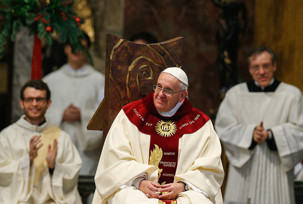 Đức Giáo hoàng Phanxicô cử hành Thánh lễ tại Nhà thờ Gesù ở Rôma vào ngày 3/1/2014. Thánh lễ được cử hành nhằm lễ kính Thánh Danh Chúa Giêsu, tạ ơn nhân dịp tuyên thánh của Thánh Phêrô Faber, một tu sĩ Dòng Tên. (Ảnh: Paul Haring, CNS)