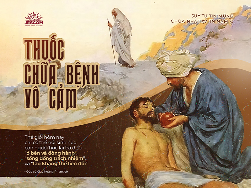 Tin Mừng hôm nay không chỉ kể một câu chuyện đạo đức. Đây cũng chẳng phải là câu chuyện viễn vông. Đây là một sự kiện luôn có ở mọi thời. Mục đích của Đức Giêsu muốn chúng ta: tình yêu thương không ở trên môi miệng, nhưng nằm nơi ánh mắt, đôi tay, đôi chân và thời gian mà ta dành cho người khác. Tình yêu mà không hành động là tình yêu sáo ngữ. Chỉ có tình yêu hành động mới là “liều thuốc” hữu hiệu nhất để chữa vết thương vô cảm của chúng ta. Khi uống được thuốc này, tâm hồn chúng ta biết chạnh lòng trắc ẩn, biết rung động và dấn thân. Tình yêu thật sự là thứ kháng thể mạnh mẽ nhất chống lại mọi hình thức vô cảm và ích kỷ. Tình yêu đó không chỉ đến từ nỗ lực bản thân, nhưng đến từ cuộc gặp gỡ Thiên Chúa, Đấng luôn “chạnh lòng thương”.